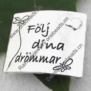 Lead-free Zinc Alloy Tag Pendant/Charm, Rectangle, Approx 40mm long, 8mm wide, Sold by PC