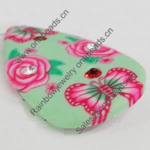 Pottery Clay Pendants/Earring charm, Mix Color, Teardrop 38x50mm, Sold by Group