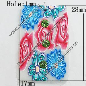 Pottery Clay Pendants, Rectangle 28x17mm Hole:1mm, Sold by Bag