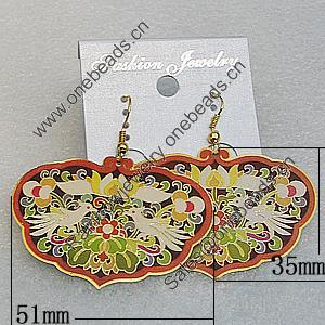 Iron Earring, Teardrop 50x38mm, Sold by Group