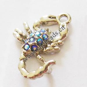 Pendant with Crystal, Nickel-Free & Lead-Free Zinc Alloy Jewelry Findings, Fox 18x27mm, Sold by PC