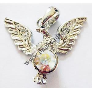 Pendant with Crystal, Nickel-Free & Lead-Free Zinc Alloy Jewelry Findings, Angel,26x31mm, Sold by PC