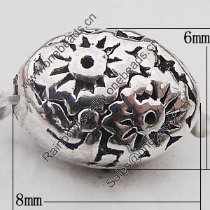 Beads. Fashion Zinc Alloy jewelry findings.8x6mm. Hole size:1mm. Sold by KG