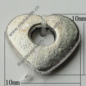 Bead Zinc Alloy Jewelry Findings Lead-free, Heart 10x10mm, Hole:1mm, Sold by Bag