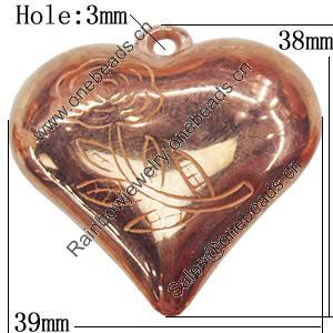 Jewelry findings, CCB Plastic Pendant, Original, Heart, 34x35mm Hole:3mm, Sold by Bag