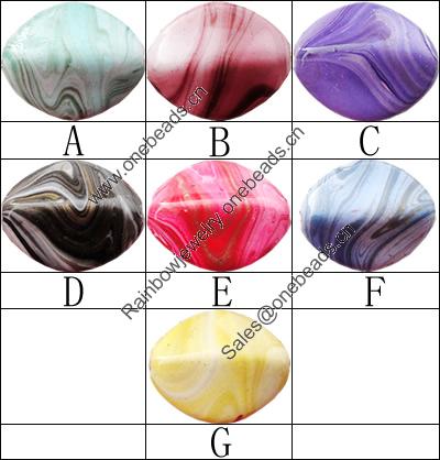 Spray-Painted Acrylic Beads, Fluted Oval 28x15mm Hole:2.5mm, Sold by bag