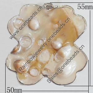 Natural Shell Pendant with Inner Flower, Rectangle, 22x30mm, Hole:Approx 2mm, Sold by PC