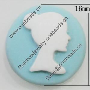 Cameos Resin Beads, No-Hole Jewelry findings, Flat Round 19mm, Sold by Bag
