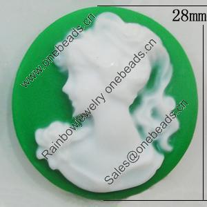 Cameos Resin Beads, No-Hole Jewelry findings, 22mm, Sold by Bag