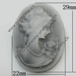 Cameos Resin Beads, A Grade, No-Hole Jewelry findings, 30x40mm, Sold by PC