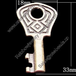 Pendant. Fashion Zinc Alloy Jewelry Findings. key 44x17mm. Sold by Bag