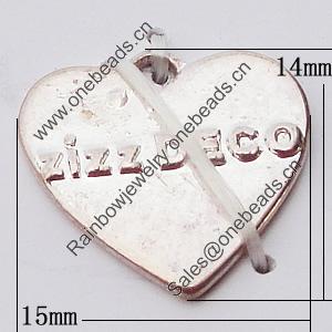 Pendant, Zinc Alloy Jewelry Findings, Lead-free, Heart 15x16mm, Sold by Bag