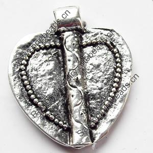 Pendant. Fashion Zinc Alloy Jewelry Findings. Heart 14x15mm. Sold by Bag