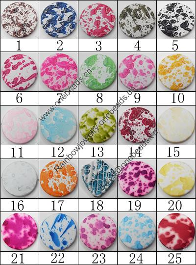Painted Spray-paint Colorful Acrylic Beads, Faceted Flat Round 25mm Hole:2mm, Sold by Bag