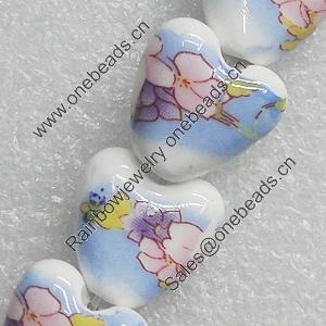Printing Ceramics Beads, Heart 15x15mm, Sold by Bag