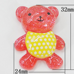 Resin Cabochons, Bear, No-Hole Jewelry findings, 41x57mm, Sold by Bag