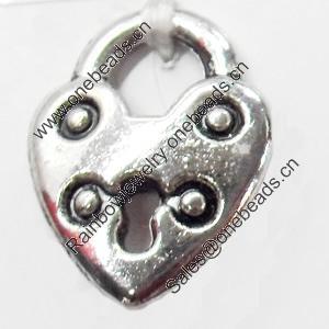 Pendant. Fashion Zinc Alloy Jewelry Findings. Lead-free. Heart 14x12mm. Sold by Bag
