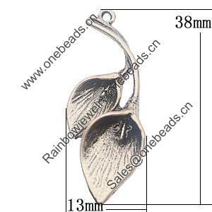 Pendant, Zinc Alloy Jewelry Findings, Leaf 25x54mm, Sold by Bag