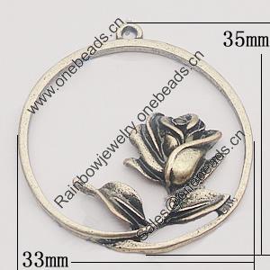 Pendant/Charm, Zinc Alloy Jewelry Findings, Lead-free, Flat Round 43x39mm, Sold by Bag