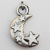 Pendant, Lead-free Zinc Alloy Jewelry Findings, Moon 17x10mm Hole:2mm, Sold by Bag