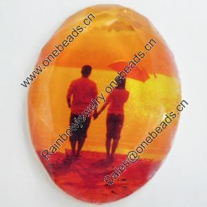 Resin Cabochons, No-Hole Jewelry findings, Faceted Flat Oval, 30x45mm, Sold by PC