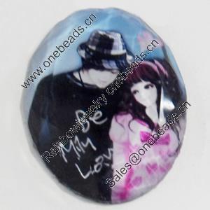 Resin Cabochons, No-Hole Jewelry findings, Faceted Oval, 39x53mm, Sold by PC