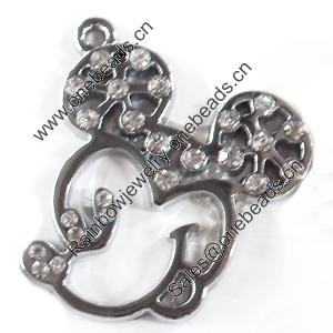 Zinc Alloy Charm/Pendant with Crystal, Hollow Butterfly 37x34mm, Sold by PC