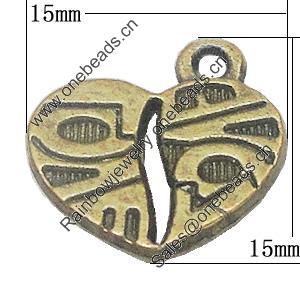 Pendant. Fashion Zinc Alloy Jewelry Findings. Heart 17x12mm. Sold by Bag