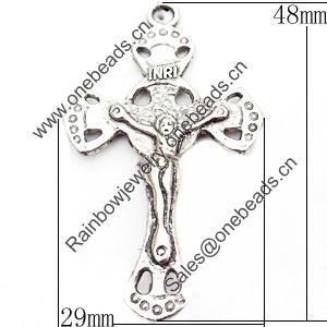 Pendant Zinc Alloy Jewelry Findings Lead-free, Cross, 41x64mm Hole:2mm, Sold by Bag