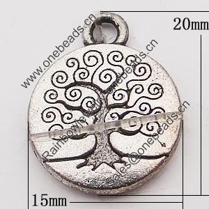 Pendant/Charm, Zinc Alloy Jewelry Findings, Lead-free, Flat Round 16mm, Sold by Bag