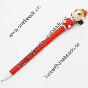 Fimo(Polymer Clay) Jewelry Ball Pen, with a fimo bead head, 42x180mm, Sold by PC