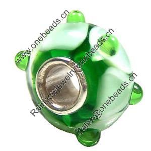 European Lampwork Glass Beads, 925 Silver Core, Rondelle 14x6.8mm Hole:4.5mm, Sold by PC
