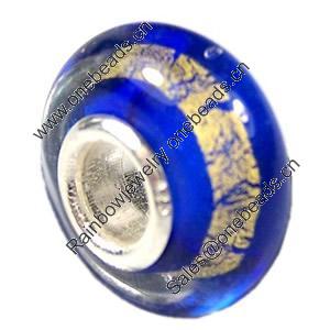European Lampwork Glass Beads, 925 Silver Core, Rondelle 14x6.8mm Hole:4.5mm, Sold by PC