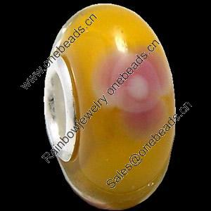 European Lampwork Glass Beads, 925 Silver Core, Rondelle 14x6.8mm Hole:4.5mm, Sold by PC