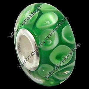 European Lampwork Glass Beads, 925 Silver Core, Rondelle 14x6.8mm Hole:4.5mm, Sold by PC