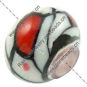 Polymer Clay Beads European, with brass core, Rondelle, 14.5x9.5mm, Hole:Approx 4-4.5mm, Sold by PC