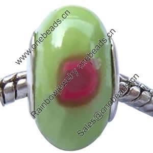 Polymer Clay Beads European, with brass core, Rondelle, 15x10mm, Hole:Approx 4-4.5mm, Sold by PC