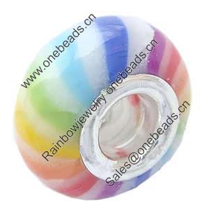 Fimo(Polymer Clay) Beads European, with 925 sterling silver core, Rondelle, 11x15mm, Sold by PC