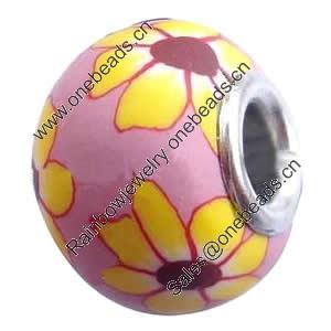 Polymer Clay Beads European, with brass core, Rondelle, 14.5x9.5mm, Hole:Approx 4-4.5mm, Sold by PC