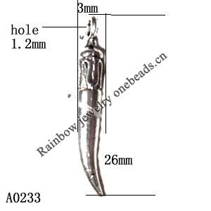Pendant Zinc Alloy Jewelry Findings Lead-free, 26x20mm Hole:2mm, Sold by Bag