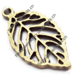 Pendant, Zinc Alloy Jewelry Findings, Lead-free, Leaf 30x17mm, Sold by Bag