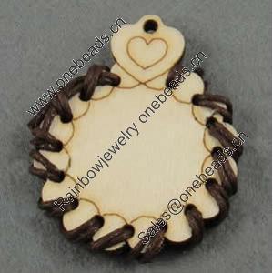 Wooden Pendant / charm,Tearcharm 50x38x2.5mm, Hole:About 1.5mm, Sold by Group