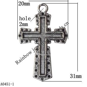 Pendant. Fashion Zinc Alloy jewelry findings. Lead-free. Cross 25x48mm. Sold by PC