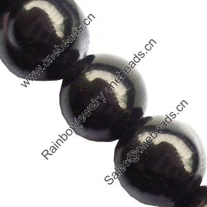 Gemstone beads, black stone, round, 12mm, sold per 15-inch strand