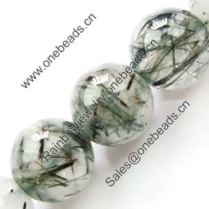 Gemstone beads, black rutilated quartz, round, 14mm, Sold per 16-inch Strand